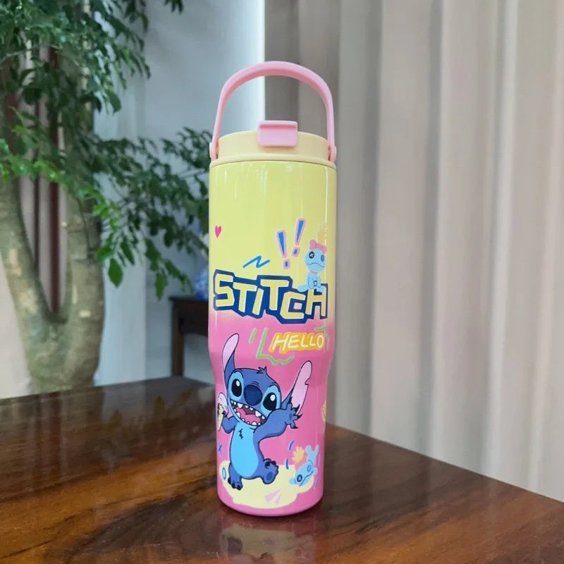 This 30oz stainless steel car handle cup features a Stitch series cartoon -printed design, combining cute style with everyday functionality.